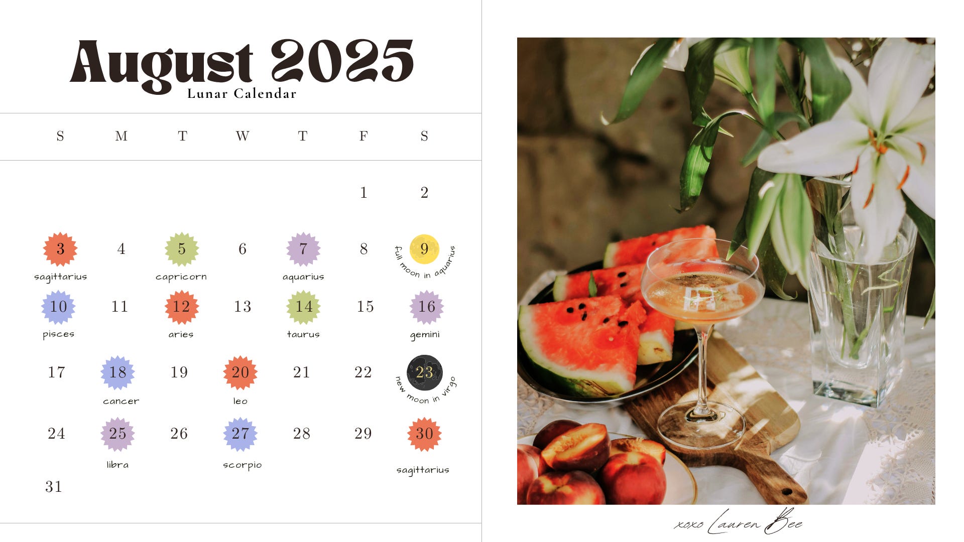 Hello August ☀️ A Hello, Some Horoscopes, and A Free Moon Calendar.